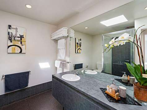 Fitzgeorge is a light-filled, spacious and thoughtfully designed town residence in central Melbourne. A green and tranquil oasis in Fitzroy, one of the most popular shopping and dining areas of Melbourne, and only minutes from the city centre. Features 2 bedrooms each with queen bed, capacity to add an extra single bed, cot and high chair. Air-conditioned and heated, full kitchen, washer, dryer, parking and free WiFi. Sleeps 6 adults.